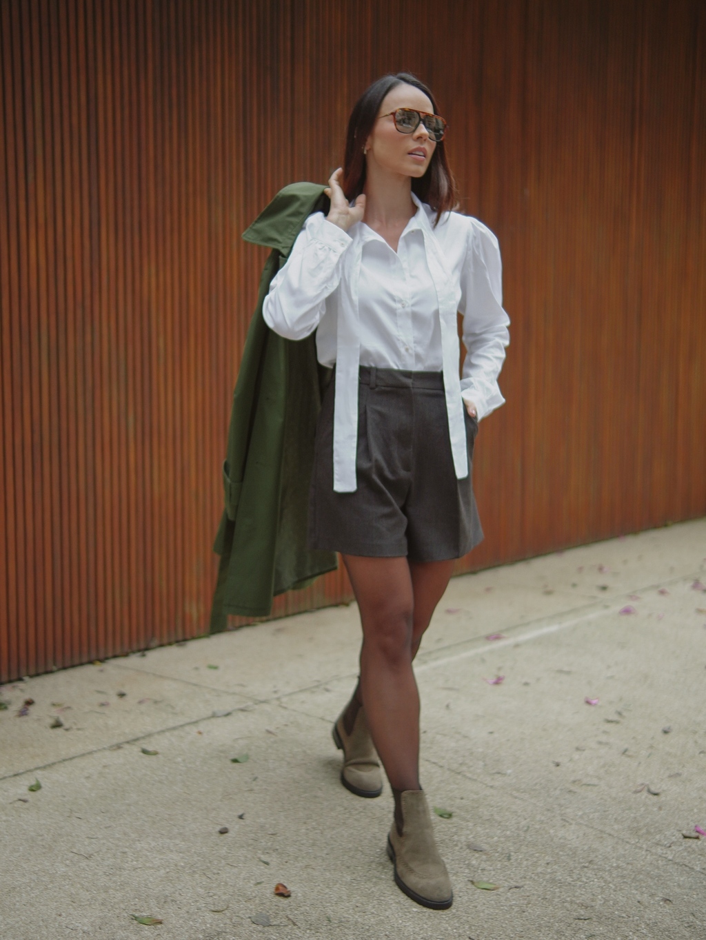 Camisa em tricoline 100% algodão premium. Toque leve. Fechamento por botões e laço na gola.