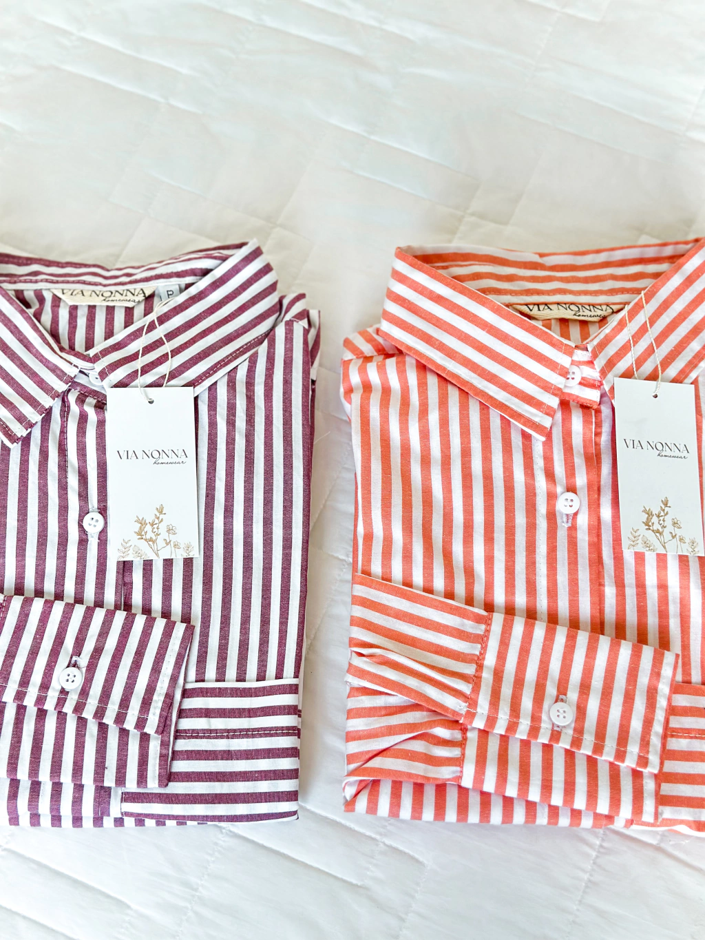 Camisa com botões e calça com cós de elástico. Disponível nas cores tinto e rose.