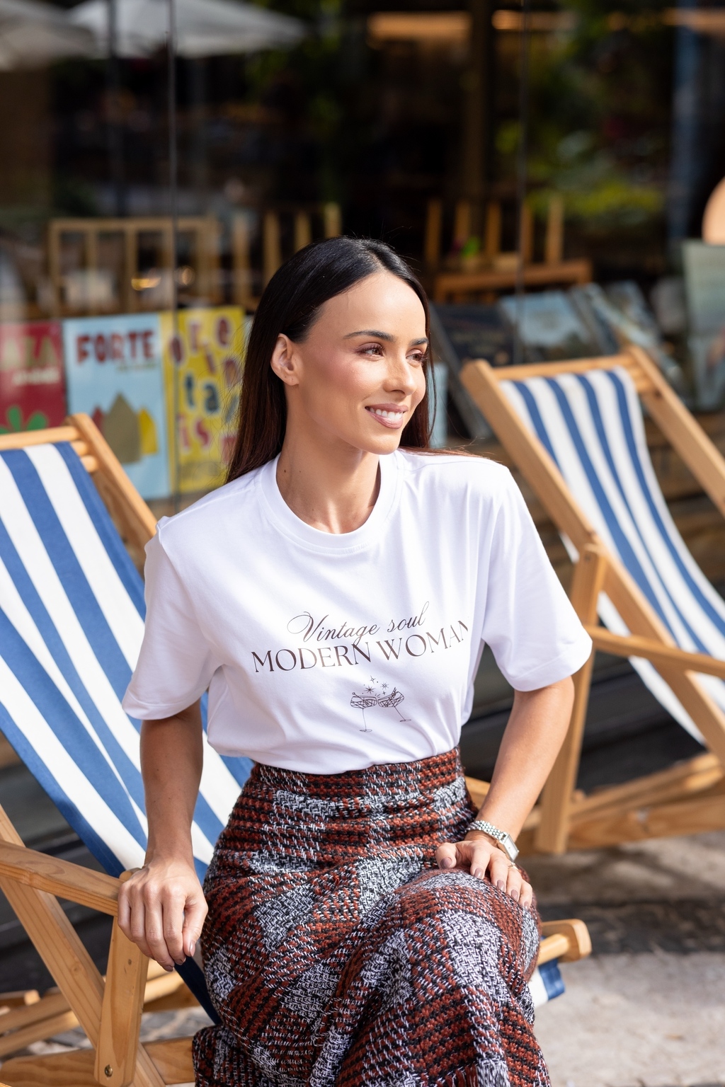 Camiseta algodão egípcio 94% algodão e 6% elastano. Silk Vintage Soul, modern woman.